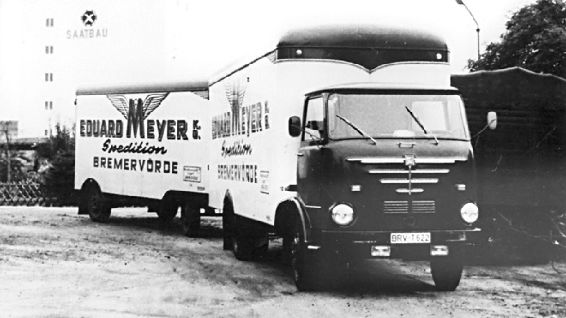Selbstverständlich war nicht abzusehen, welche Entwicklungen die nächsten 100 Jahre bringen würden, als der gleichnamige Großvater des heutigen Firmeninhabers 1906 den Fuhrbetrieb übernahm. In der Arbeitswelt des frühen 20. Jahrhunderts war der Wandel vom „Rollkutscher“ in der Alten Straße und den Stallungen der Pferde in der Kirchenstraße zu einem modernen Dienstleistungsunternehmen sicher nicht zu erkennen. Mit Optimismus, Fleiß und drei Pferdegespannen begann Eduard Meyer das Unternehmen voranzutreiben. Gute Kontakte der Kutscher, die allein das Personal ausmachten, und die Mithilfe der Milchfahrer der Bremervörder Molkerei machten den Transport der Stückgutsendungen in die Nachbardörfer der Region möglich. Frachtaufträge für Steine der benachbarten Ziegeleien, aber auch Kohle, Zucker, Mehl, Salz und Kunstdünger wurden per Handschlag erteilt. Heute kaum nachzuvollziehen: ein Gütertransport nach Hamburg dauerte mehrere Tage, auch wenn die Pferde unterwegs am Ausspann gewechselt wurden. Der Faktor „Zeit“ war von untergeordneter Bedeutung.